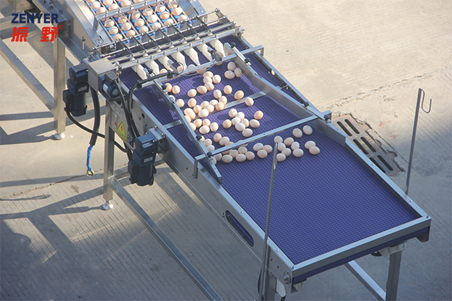يتصل النظام مباشرةً بحزام تجميع البيض المركزي من بيت الدواجن، مما يسمح بتدفق البيض تلقائيًا إلى حزام التجميع. وينقسم هذا الحزام إلى قسمين: منطقة تخزين البيض ومنطقة فرز. فإذا وصل حزام المجمّع إلى السعة الكاملة، تقوم المستشعرات بضبط السرعة تلقائيًا لضمان ملء البيض بكفاءة مع منع التلف.