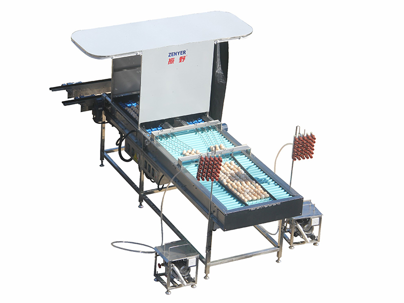 خط معالجة البيض ZENYER 303A مكون من ماكينة غسل البيض 203A و ماكينة فرز البيض 107، و الطاقة الإنتاجية قابلة للضبط بأقصى طاقة إنتاجية 20,000 بيضة في الساعة.