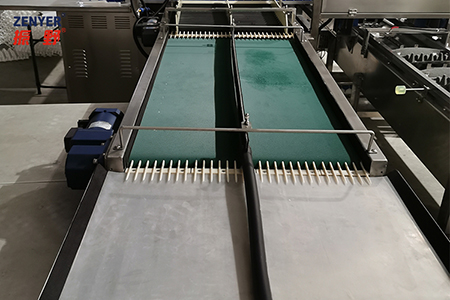 بعد التجفيف، يدخل البيض إلى وحدة التجميع، التعقيم بالإشعة فوق البنفسجية UV وقسم تدوير الرأس لوحدة الفرز. هذا الموديل من الماكينة مجهزة أيضاً بنظام التعقيم بالإشعة فوق البنفسجية UV، حيث تتميز بالتصميم الخاص وحدة التعقيم بالإشعة فوق البنفسجية UV لتعقيم قشرة البيض لضمان أقصة معايير السلامة والصحة الغذائية. وفي الوقت نفسه، فإن إدارة الرأس تضمن توجيه البيض بالرأس الأكبر (غرفة الهواء) في الأعلى لتخزين أطول قبل عملية التعبئة.